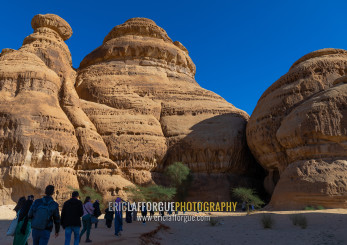 Tourists in al-Diwan in jebel Ithlib, Al Madinah Province, Alula, Saudi Arabia