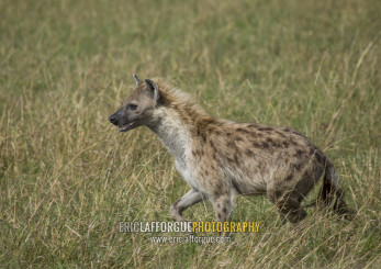 A spotted hyena in the grass, Rift valley province, Maasai mara, Kenya