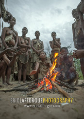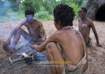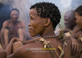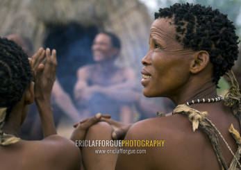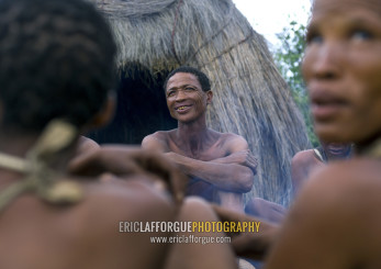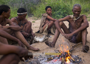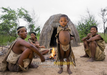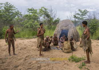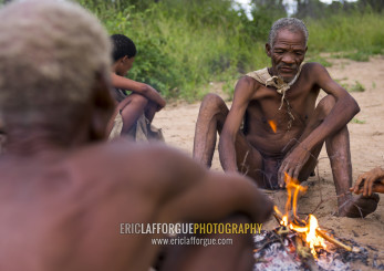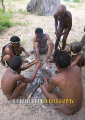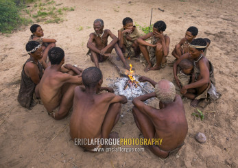 Bushman People Around A Fire In A Traditional Village, Tsumkwe, Namibia