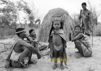 Bushman People Around A Fire In A Traditional Village, Tsumkwe, Namibia