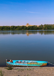 Plam trees and boat on the bank of river Nile, Northern State, El-Kurru, Sudan
