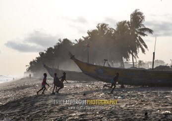Children on the beach in N’zima fishermen village, Sud-Comoé, Grand-Bassam, Ivory Coast