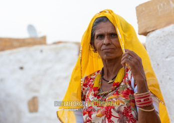 Portrait of a rajasthani woman in traditional sari, Rajasthan, Jaisalmer, India