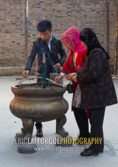 Hui muslim people burning incense stick in Yu Baba Gongbei shrine, Gansu province, Linxia, China