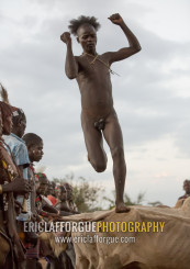 Bashada Tribe Man Jumping Above Cows During A Bull Jumping Ceremony, Dimeka, Omo Valley, Ethiopia