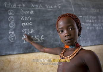 Hamer Tribe Girl In A School, Turmi, Omo Valley, Ethiopia