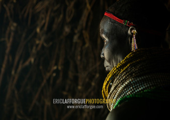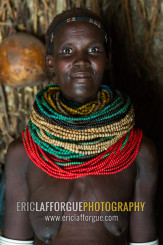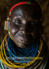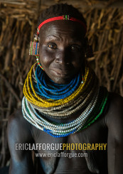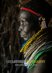 Nyangatom tribe woman with piles of beads, Omo valley, Kangate, Ethiopia