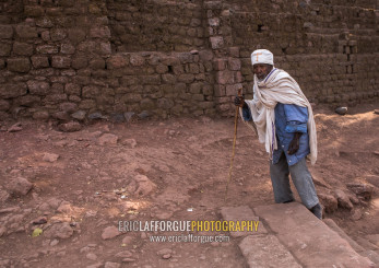 Lonely ethiopian monk during kidane mehret orthodox celebration, Amhara region, Lalibela, Ethiopia