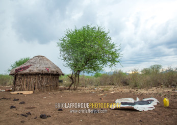 Thatch huts in a bodi tribe village, Omo valley, Hana mursi, Ethiopia