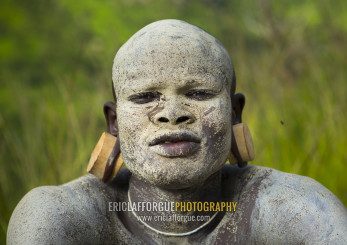 Suri tribe shepherd with body paintings for camouflage, Tulgit, Omo valley, Ethiopia