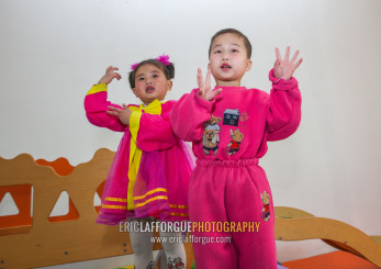 North Korean children in an orphanage singing a patriotic song, South Pyongan Province, Nampo, North Korea